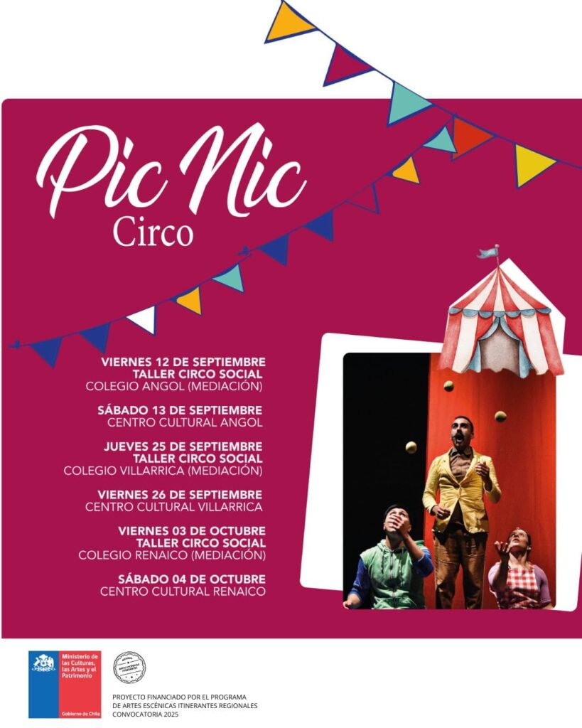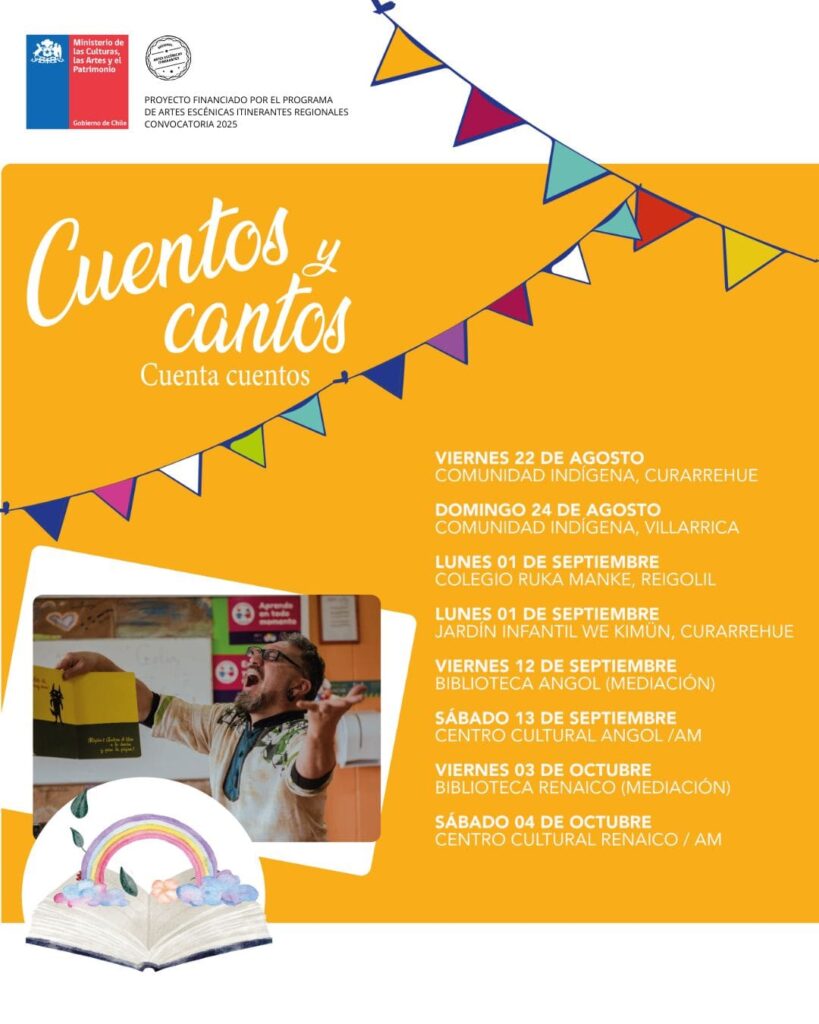 📍 El proyecto —único seleccionado en la región— será desarrollado por las compañías Circo Lacustre, Ñeque Teatral y Biblionautas, agrupaciones dedicadas a la creación artística infanto-juvenil. Entre agosto y octubre se realizarán 11 funciones escénicas y 7 actividades de mediación en Angol, Renaico, Villarrica y Curarrehue.