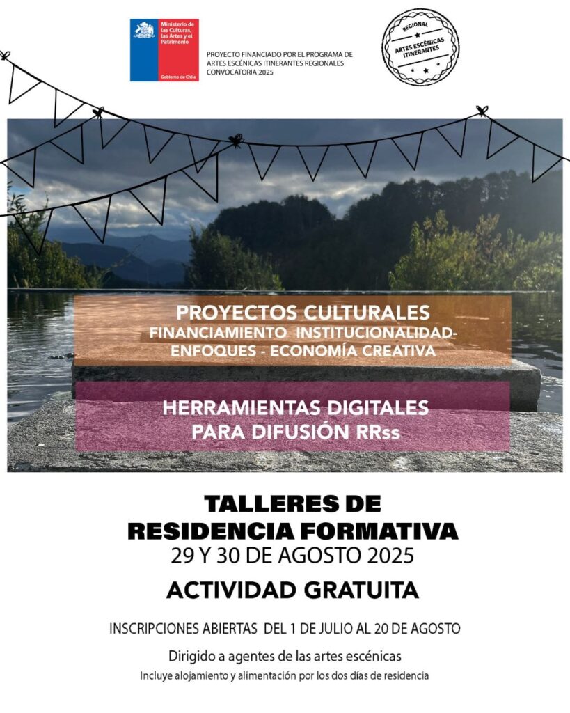 🤝 Además, el proyecto incluye una Residencia Formativa gratuita de 12 horas cronológicas para agentes de las artes escénicas de la región, con 20 cupos disponibles. Esta instancia buscará fortalecer redes, compartir aprendizajes y proyectar nuevas colaboraciones. La información sobre inscripción será difundida próximamente por RRSS de las compañías organizadoras.